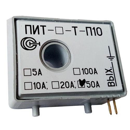 ПИТ-_-Т-П10 - преобразователи измерительные переменного тока с частотой 50 Гц. Отличается от других преобразователей своего класса низкой ценой. Выпускается для измерения тока в различных диапазонах : от 0 до 1 Ампера, ... , от 0 до 100 А: