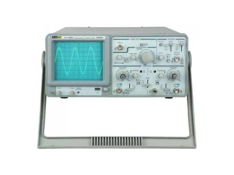 Осциллограф универсальный ПрофКиП С1-160М предназначен для исследования электрических сигналов в полосе пропускания от 0 МГц до 20 МГц путем визуального наблюдения на экране электронно-лучевой трубки (ЭЛТ), измерения их амплитудных и временных параметров по шкале экрана. Может использоваться для ремонта, обслуживания и диагностики неисправностей радиоэлектронной аппаратуры, в том числе и на труднодоступных объектах.