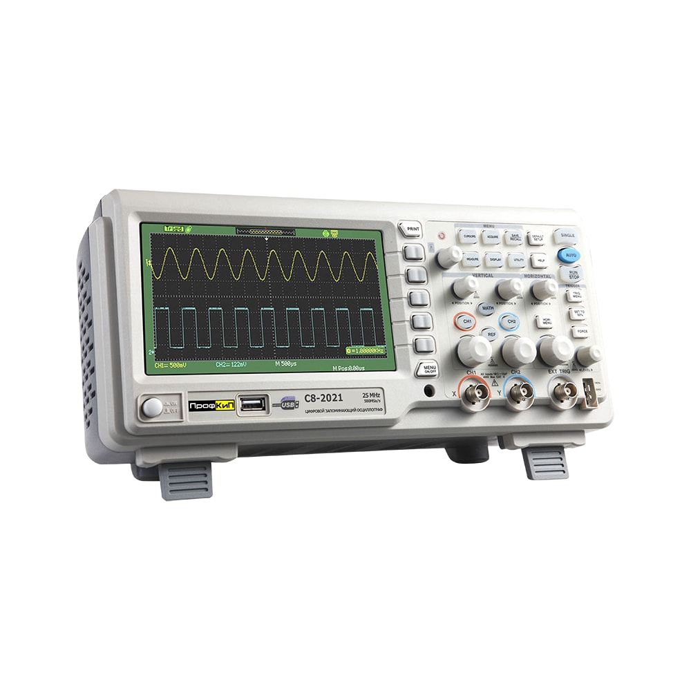 Осциллограф цифровой ПрофКиП С8-17М предназначен для исследования сложных периодических и однократных сигналов в полосе частот от 0 МГц до 60 МГц путем их регистрации в цифровой памяти с частотой дискретизации до 500 Мвыб /с, измерения амплитудных и временных параметров исследуемого сигнала и наблюдения самого сигнала и результатов измерений на цифровом дисплее.