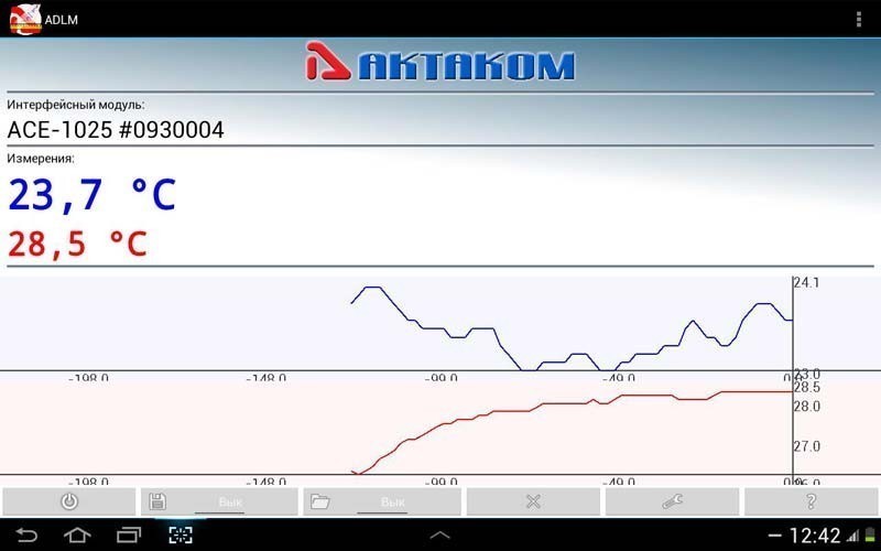 Программное обеспечение ADLM-A предназначено для считывания данных из приборов AKTAKOM серий АТТ, АТЕ, сбора данных измерений, их обработки, отображения и сохранения на планшетном компьютере с установленной операционной системой Android версии 4.0 и выше. Для соединения с прибором обязательно требуется преобразователь интерфейсов USB-RS232 АСЕ-1025/АСЕ-1026.