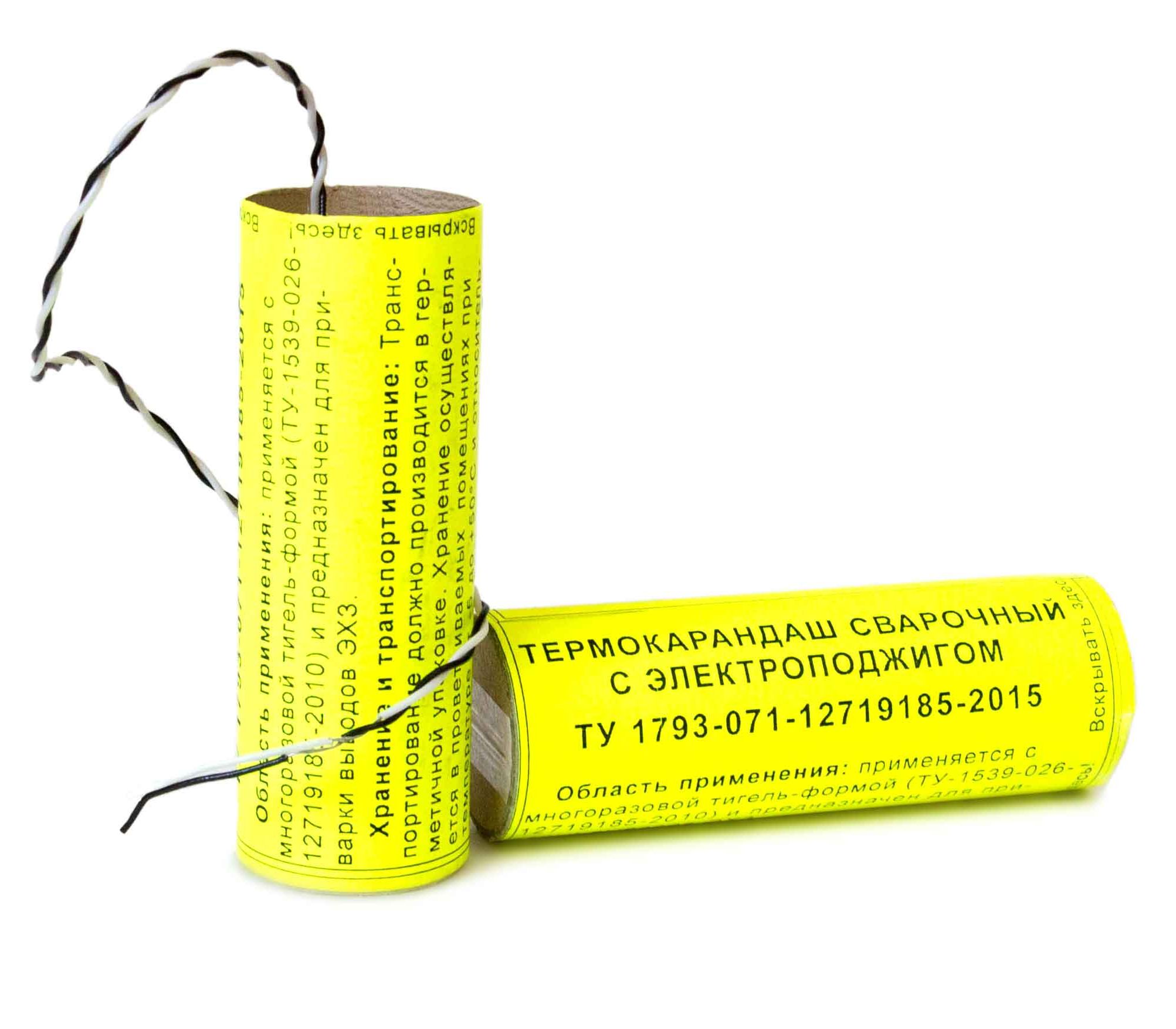 Термокарандаш сварочный - это изделие в форме цилиндра, имеющего медную оболочку, заполненную специально приготовленной термитной массой. Отличительной особенностью данного термитного карандаша является наличие электроподжига. Т.е. воспламенение происходит за счет электрического сигнала, инициируемого, например, Устройством дистанционного поджига УДП-М.