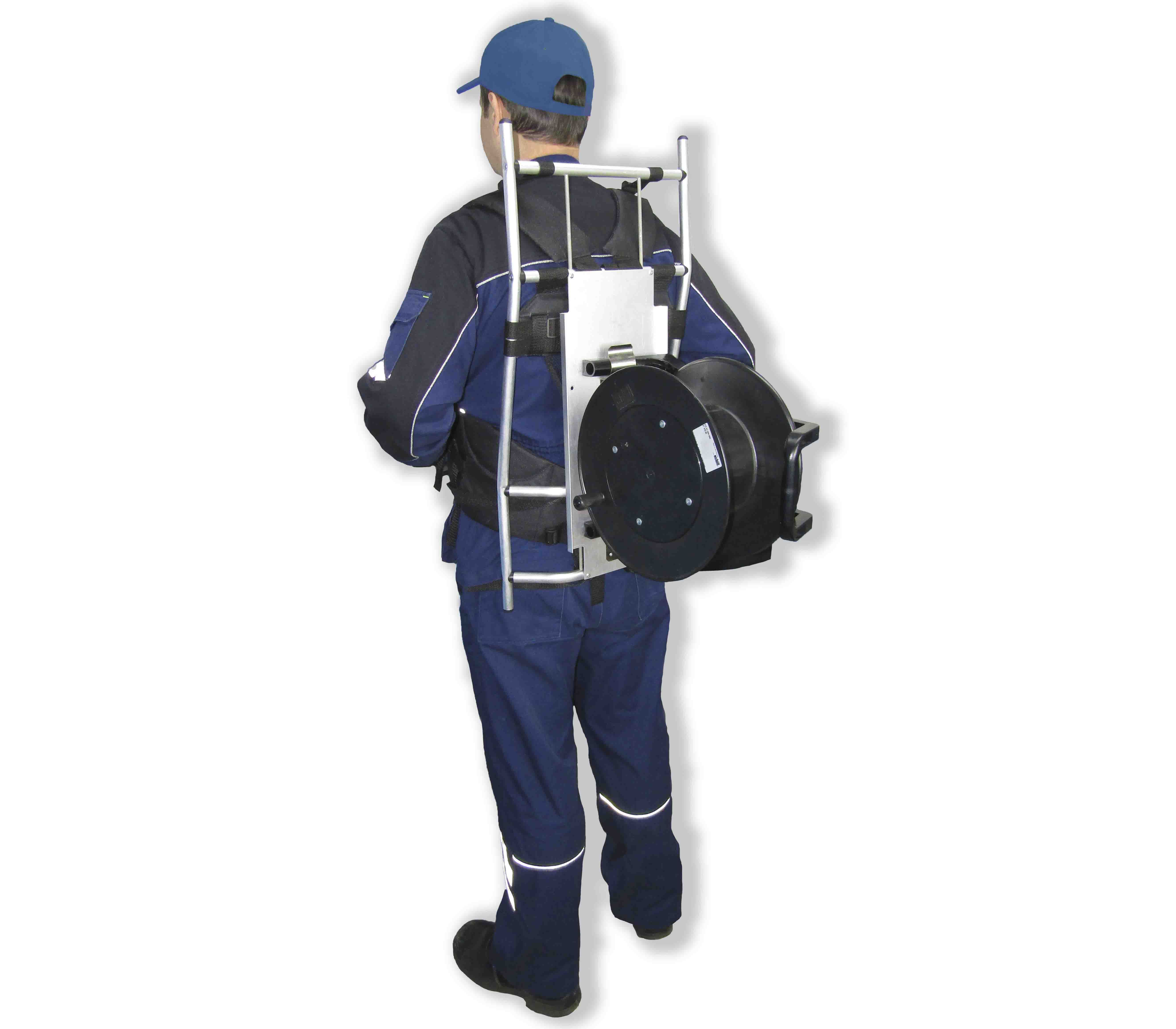 Заплечная станина разгружает спину и позвоночник и обеспечивает физиологически правильное распределение нагрузки, благодаря этому обеспечивается удобное и легкое ношение катушки.