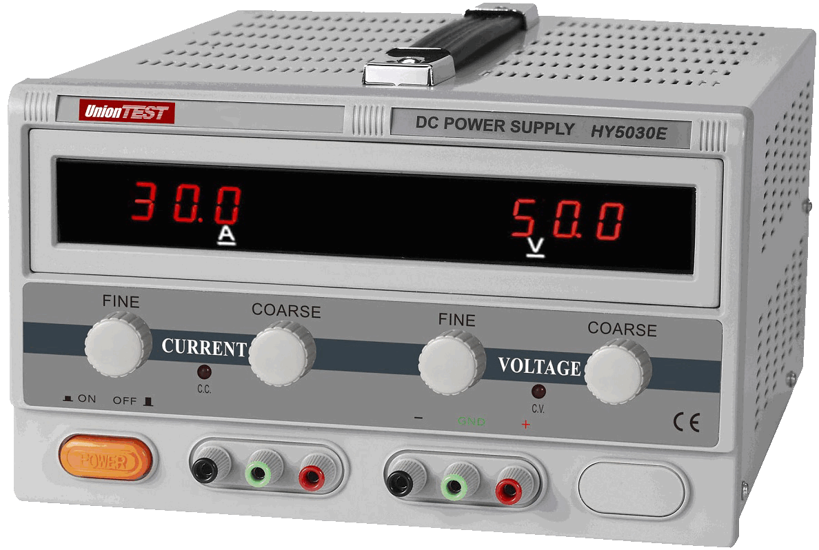 Прибор UnionTEST HY5030E (прежнее название Mastech HY5030E) представляет собой импульсный высокостабильный лабораторный регулируемый источник питания постоянного тока, допускающий плавную установку уровней и выходного напряжения и выгодного тока.